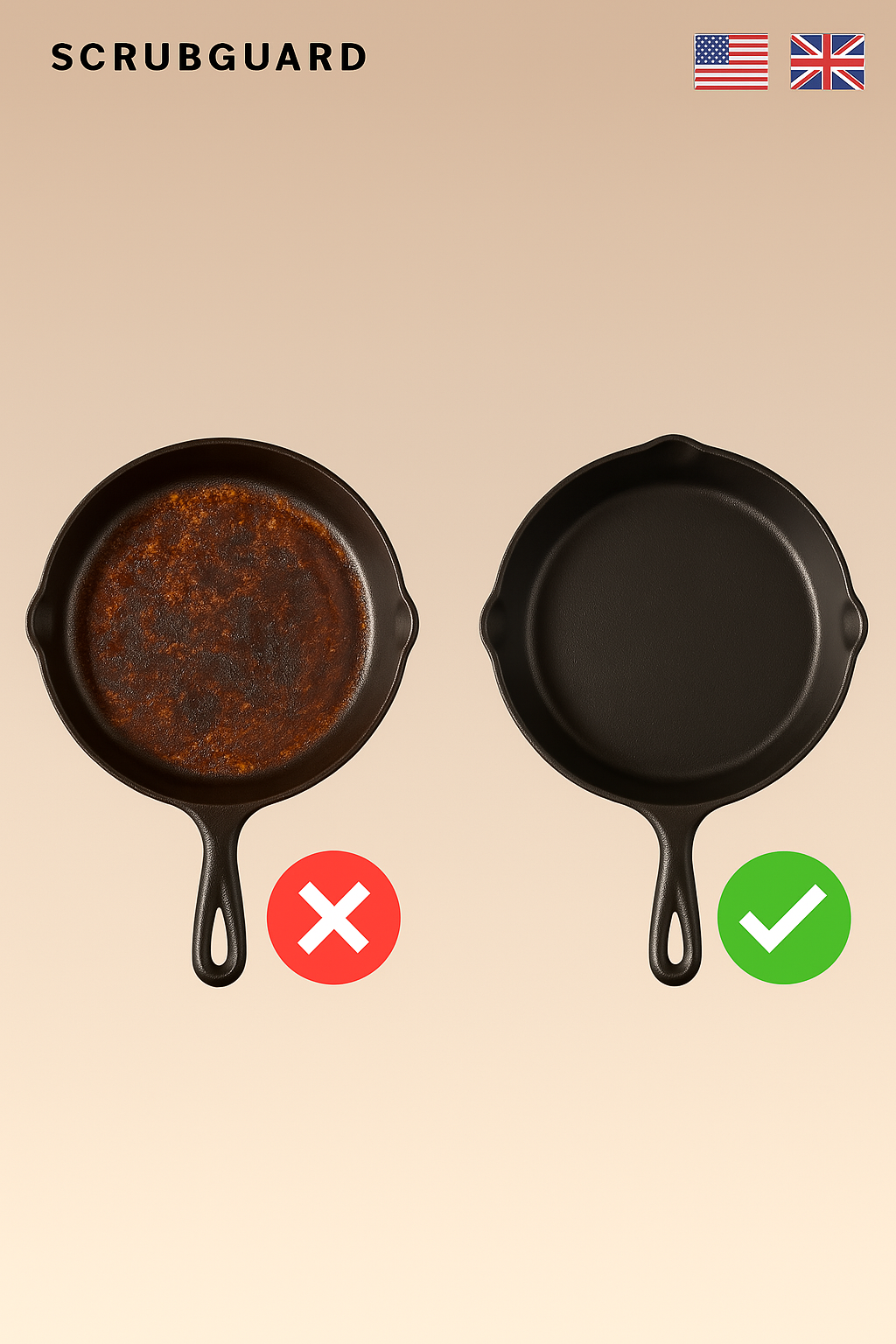 Gently cleans your iron skillet without damaging its seasoned surface.